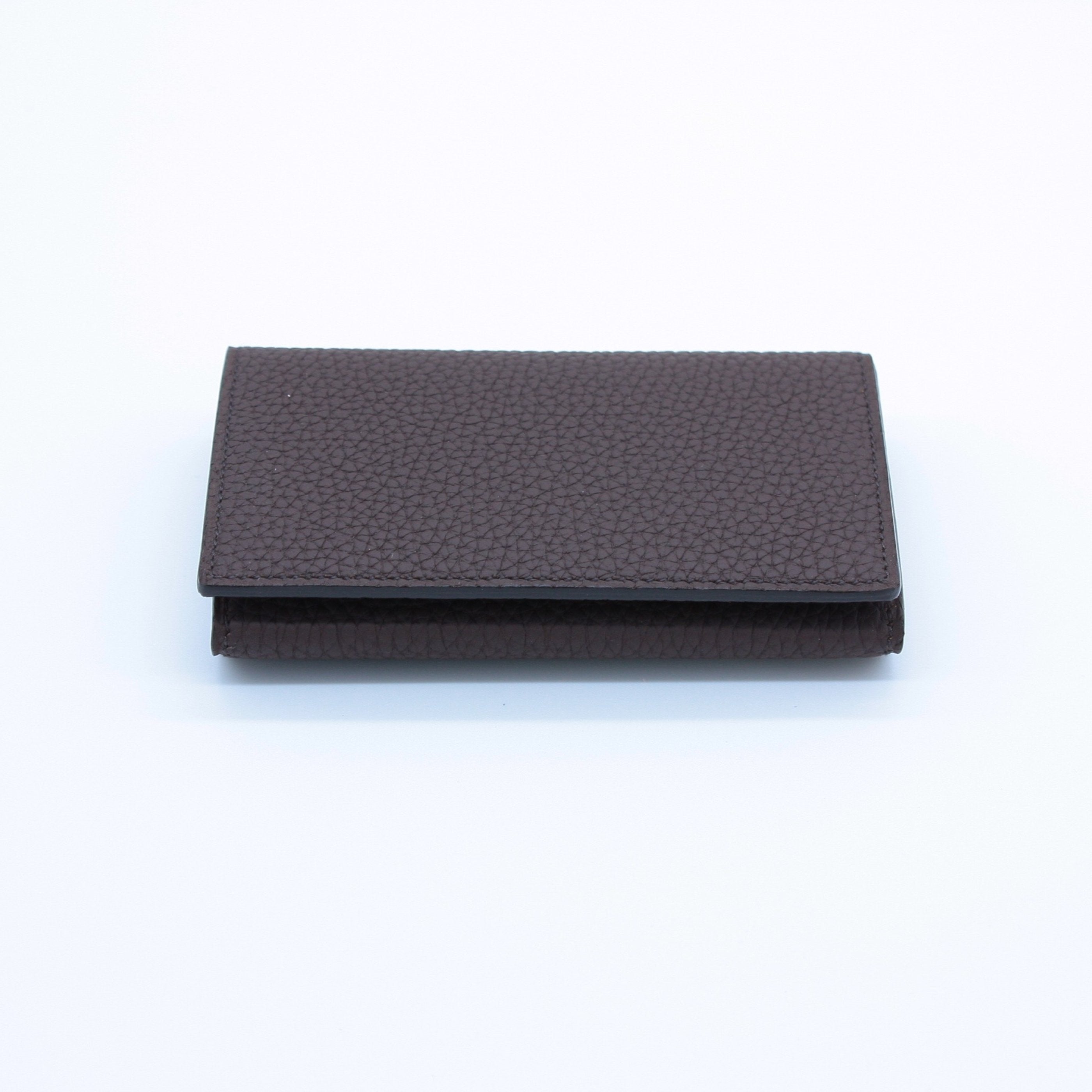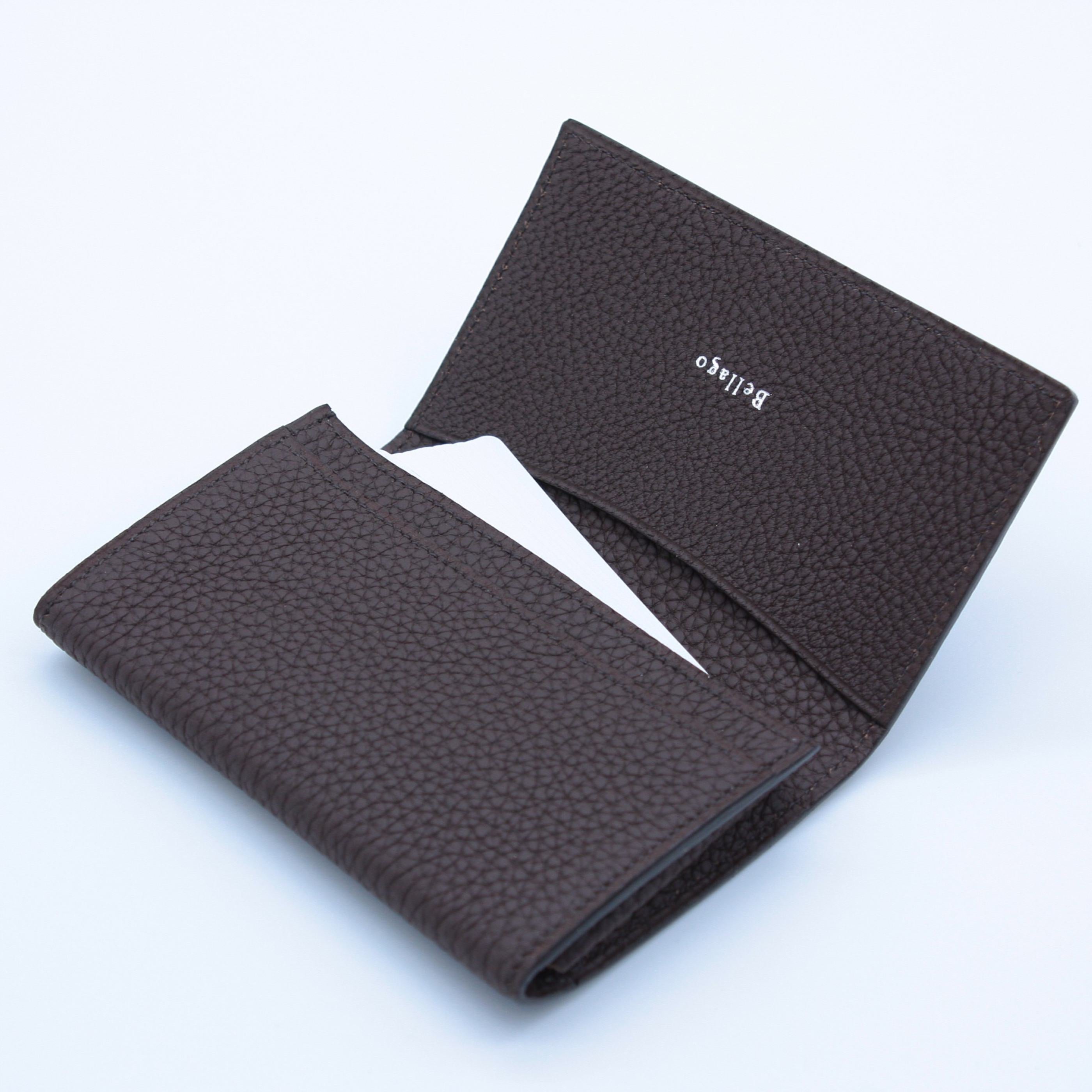 洗練されたきめ細かなシボが特徴のぺリンガー社ジャーマンシュリンクを使用した名刺入れ。シンプルなフォルムで開くと主張しすぎないブランドロゴが上質感を醸し出します。