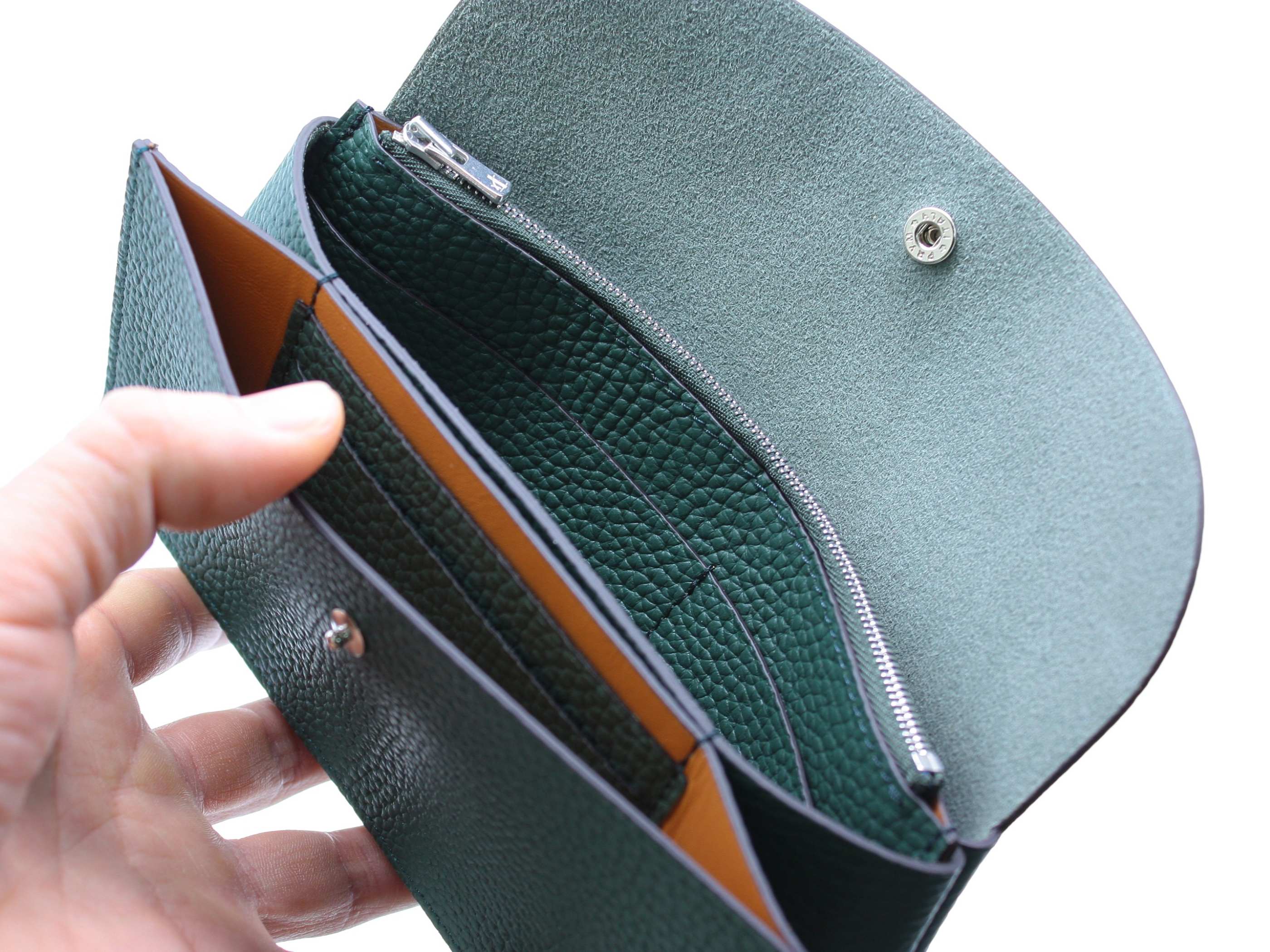 こちらのお財布は、やわらかく綺麗なシュリンクレザーを使用しており、コシがしっかりとしているのでたくさん収納しても型崩れしません。